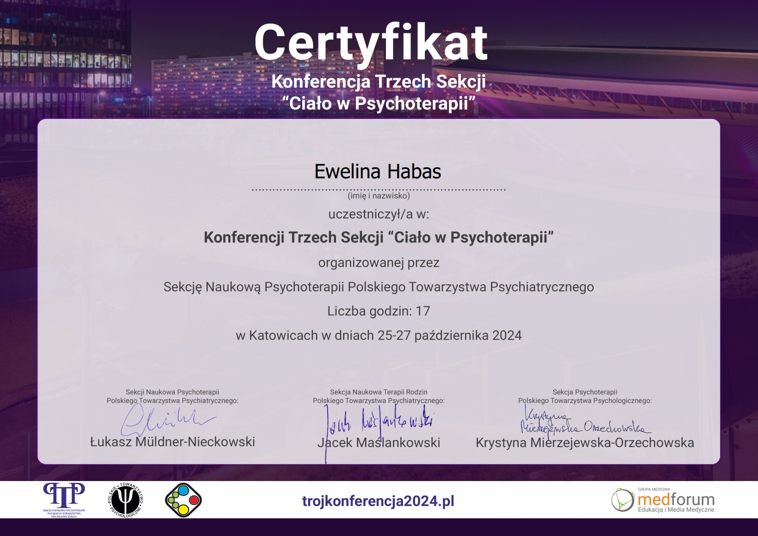 Jestem dyplomowaną psychoterapeutką, członkiem Polskiego Towarzystwa Psychoterapii Psychodynamicznej, założycielką i kierowniczką Gabinetu Psychoterapii Self-Made Person.